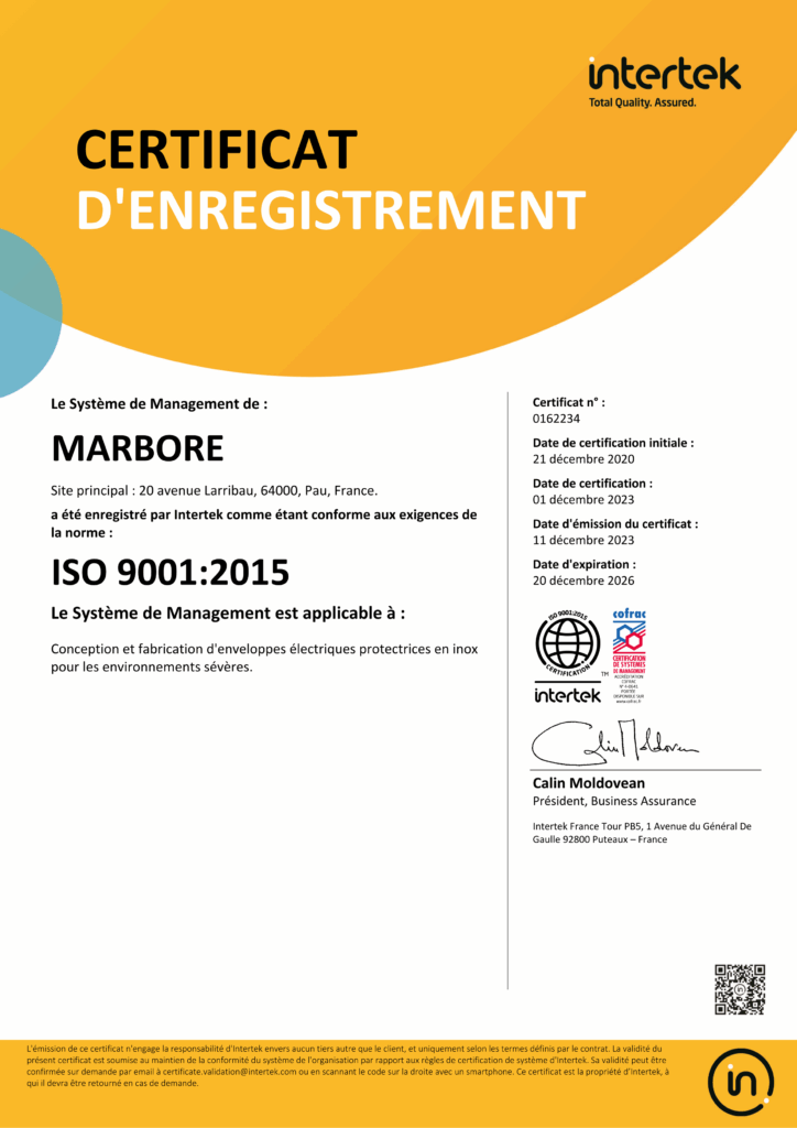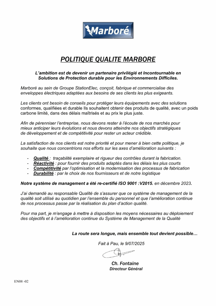 Bienvenue chez Marboré, fabricant Français d’enveloppes Inox adaptées aux environnements sévères.